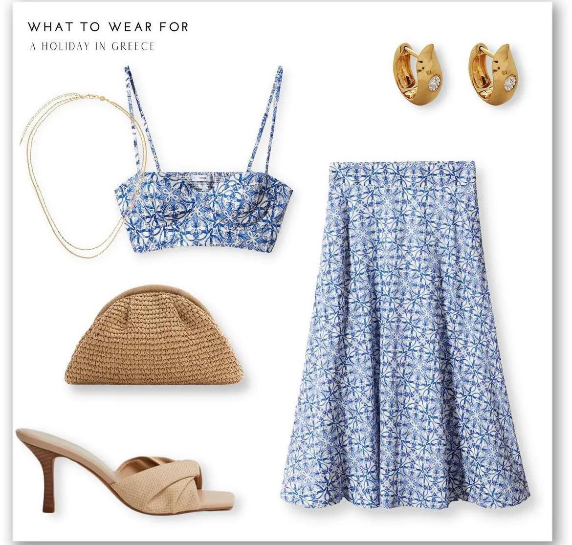 很适合海滩假日风有3个元素,蓝白配色以及裙子,俏皮的两件式碎花裙。抹胸背心甜美也浪漫,基础风的高腰半裙搭配,柔美迷人。
