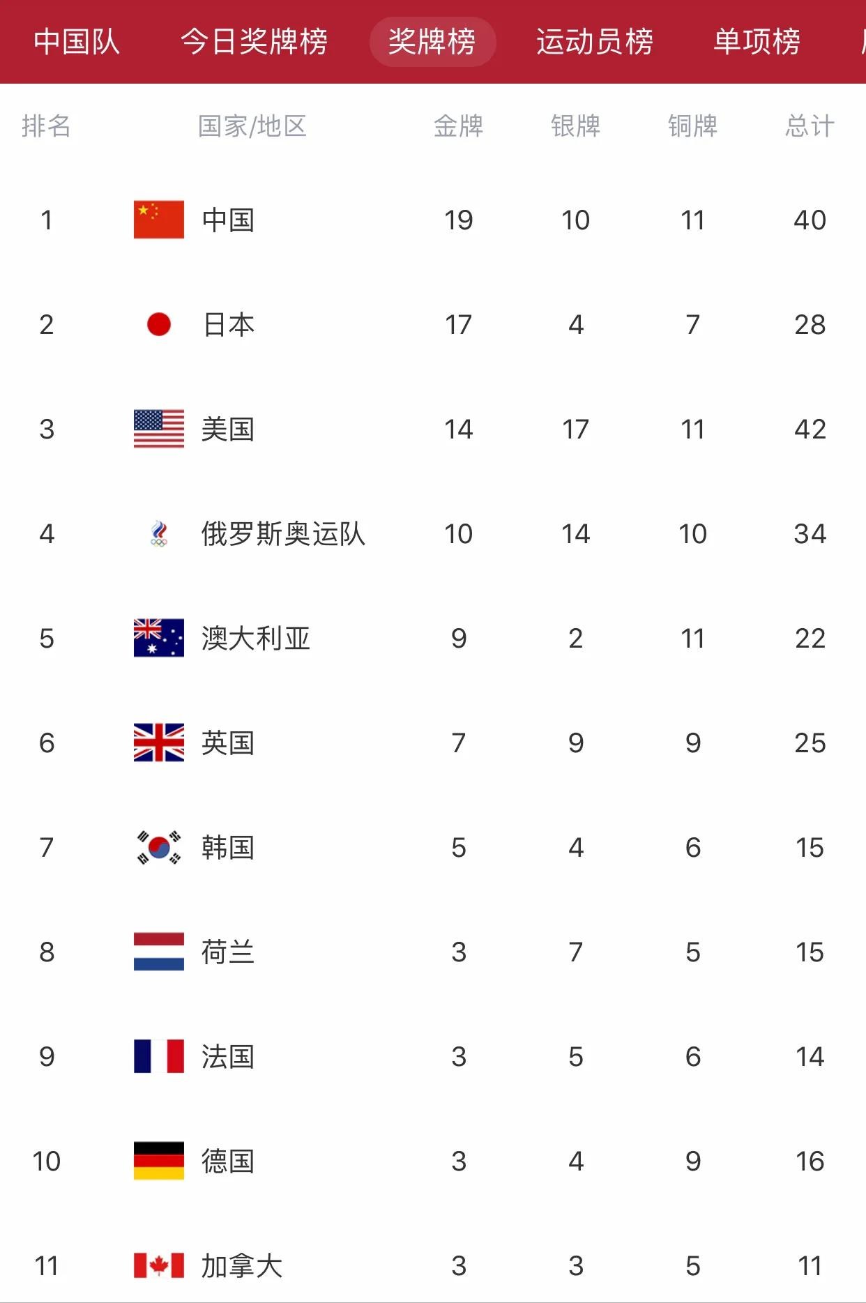 7月30日奖牌榜,中国的两个小号也要加油喔