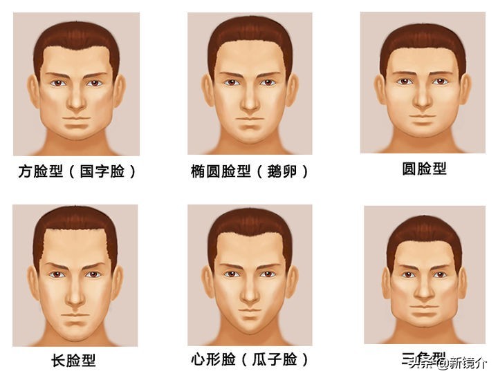 目前根据最广泛的脸型分类,主要分为以下六种脸型: