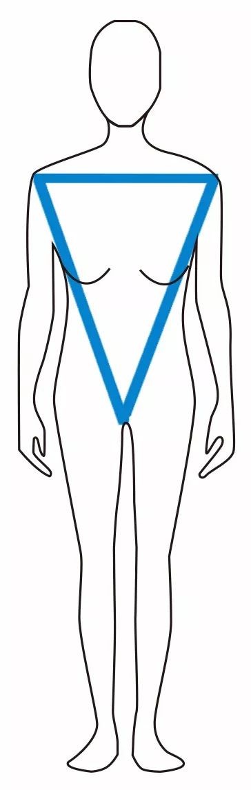 Ⅴ型身体与A型身体正好相反,是肩带臀窄腿细、男性化的倒三角身材。V型身体上半身宽大,从臀部以下越来越细,就像一个“V”字,又称Y型身材、T型身材。