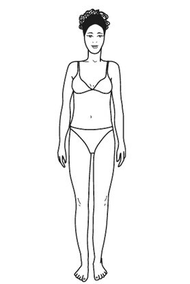 H身材的特点,“上下一样穿”,三围曲线变化不明显,多表现为胸部、腰部、臀部尺寸相近,典型的筒型身材。