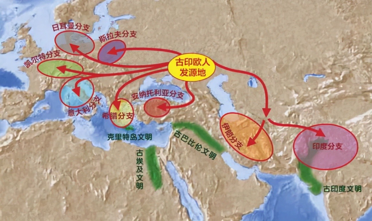后来学者们又通过考古学、语言学、基因遗传学发现雅利安人不光到过印度,中亚、西亚、欧洲遍地都有雅利安人的后裔。雅利安人原本生活在黑海和里海一带的欧亚草原,从公元前3000年开始不断向外迁徙:从东南方向入侵印度次大陆(灭亡古印度文明,建立种姓制度)、往南来到伊朗高原(雅利安人的后裔建立了波斯帝国),向西则散布欧洲大陆(跟当地的土著交战、融合他们的后代形成今天的拉丁人、日耳曼人、斯拉夫人、凯尔特人)。