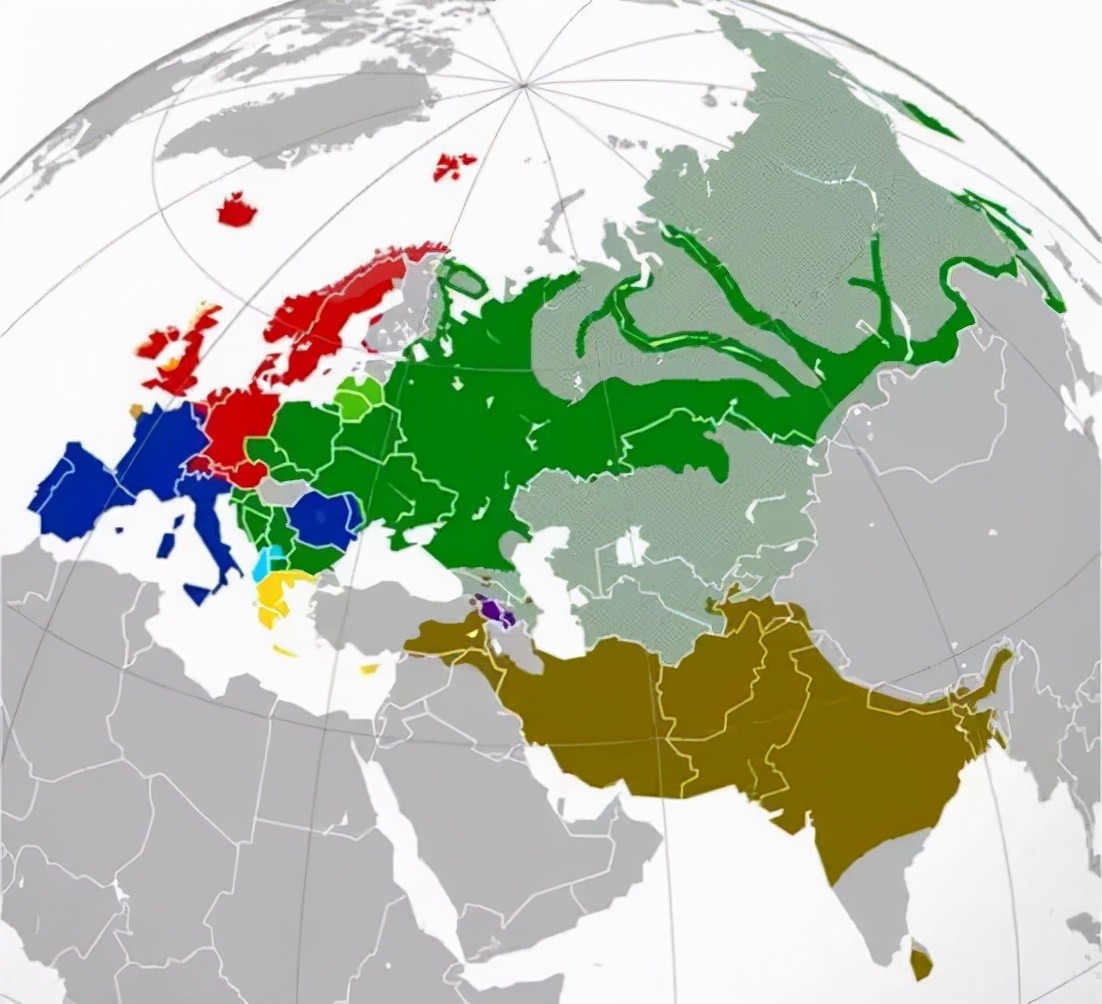 看了雅利安人的迁徙地图后,我们不难发现:从印度到欧洲这片广阔的土地遍布雅利安人的后代,所以在学术上把雅利安人称作原始印欧人。其中他们使用的语言被叫作原始印欧语,其后上千年里发展出上百种语言,这些有着同宗同源的语言被统称为印欧语系。咱们熟知的英语、法语、德语、西班牙语、俄语以及印地语、梵语和波斯语都属于印欧语系。