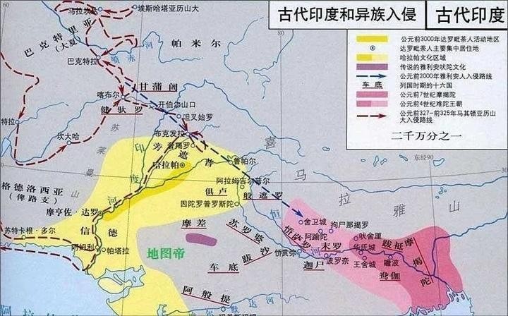 先是于公元前6世纪,遭到波斯帝国的入侵。二百年后,来自古希腊的亚历山大大帝饮马印度河畔。
