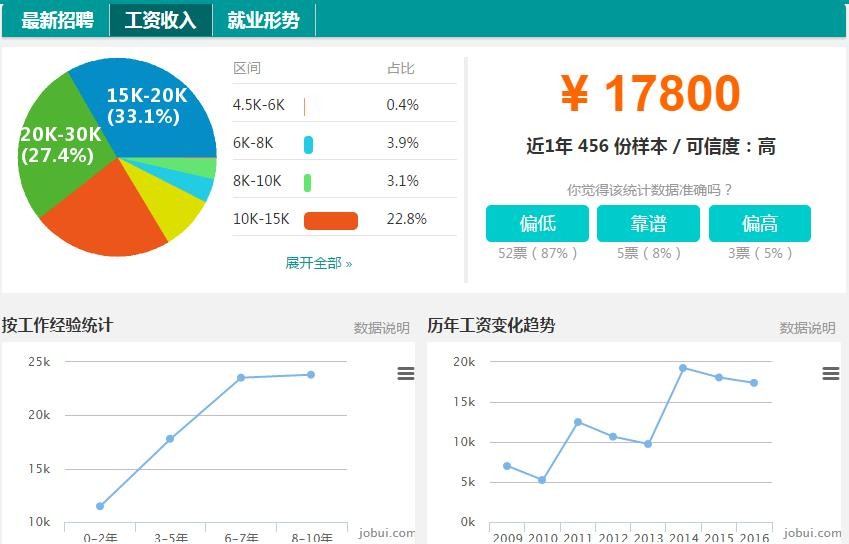 5)在北京大数据开发工程师的平均薪水已经到22000元(数据统计来职友集),而且目前还保持强劲的发展势头。