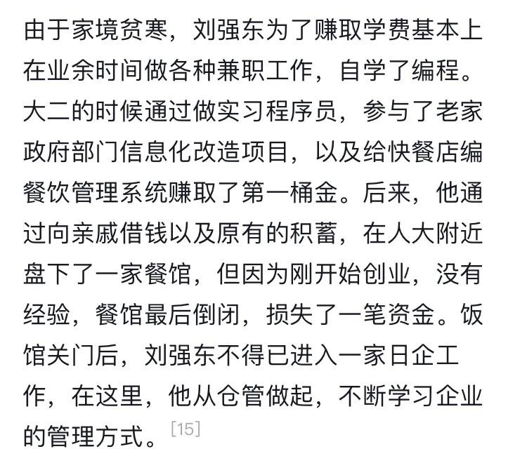 据载,刘强东父亲是给国家跑船的,算是公职铁饭碗,后来创业也赚到了钱,这显然给他的发展铺垫了道路,尤其是经济上的后顾之忧,而对于后来他花20万买的餐厅,可能跟后来的家庭条件密不可分。