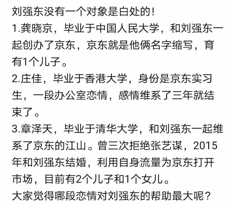 在刘强东身上,有一点还至关重要,那就是成功人士与普通人的区别更在于,成功人士所处的对象都没有白处,而且还都能处到对象,对象还都是白富美类型,而普通人连找对象都费劲。