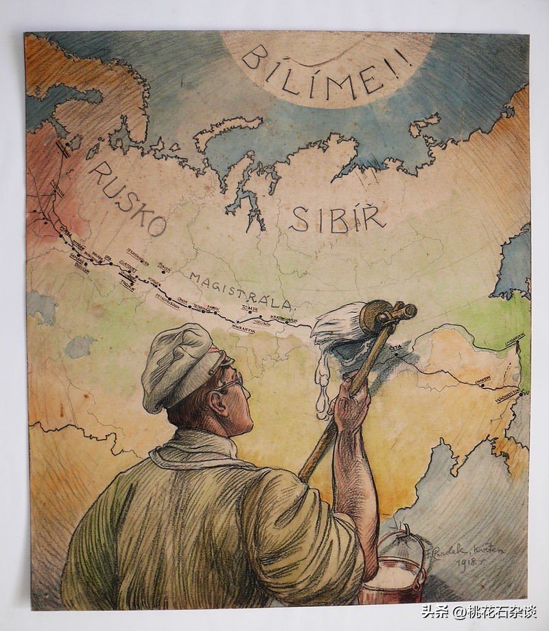 以漂白象征捷斯军团控制西伯利亚铁路的白军宣传画