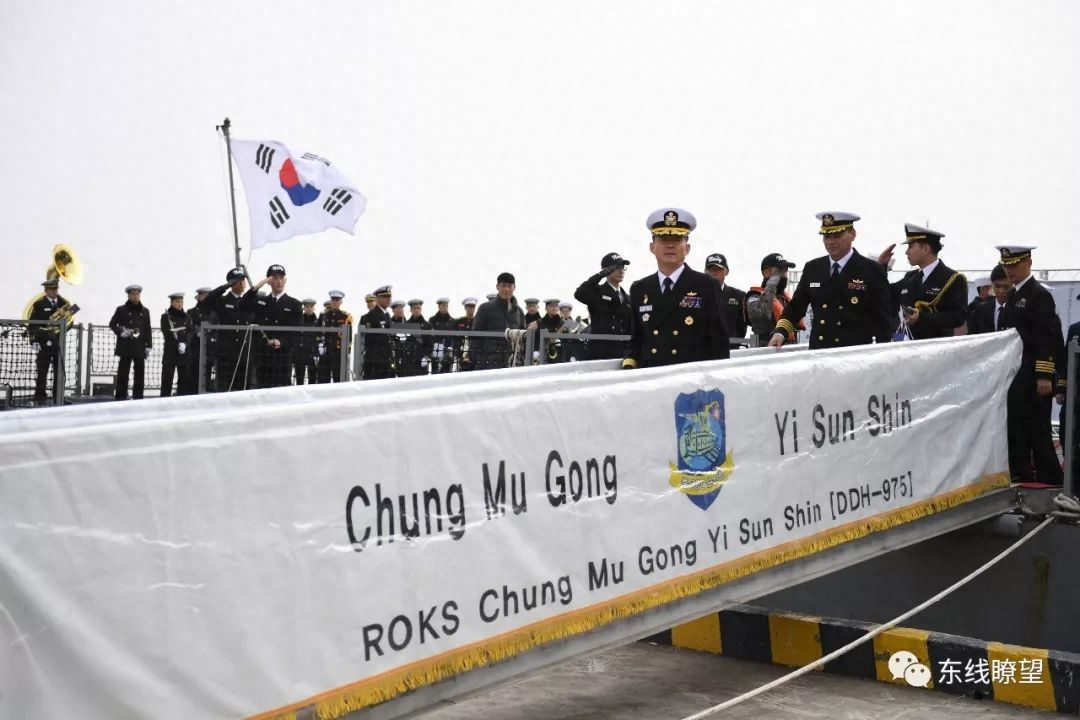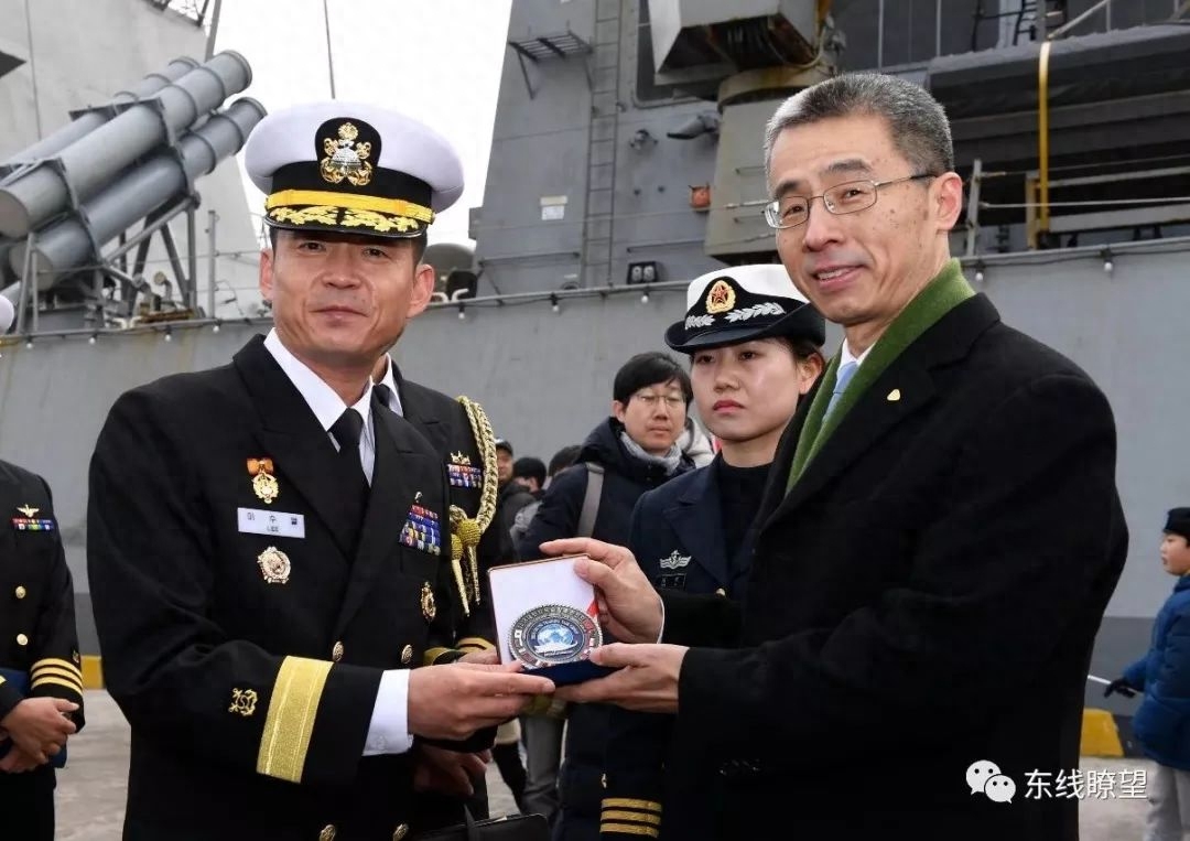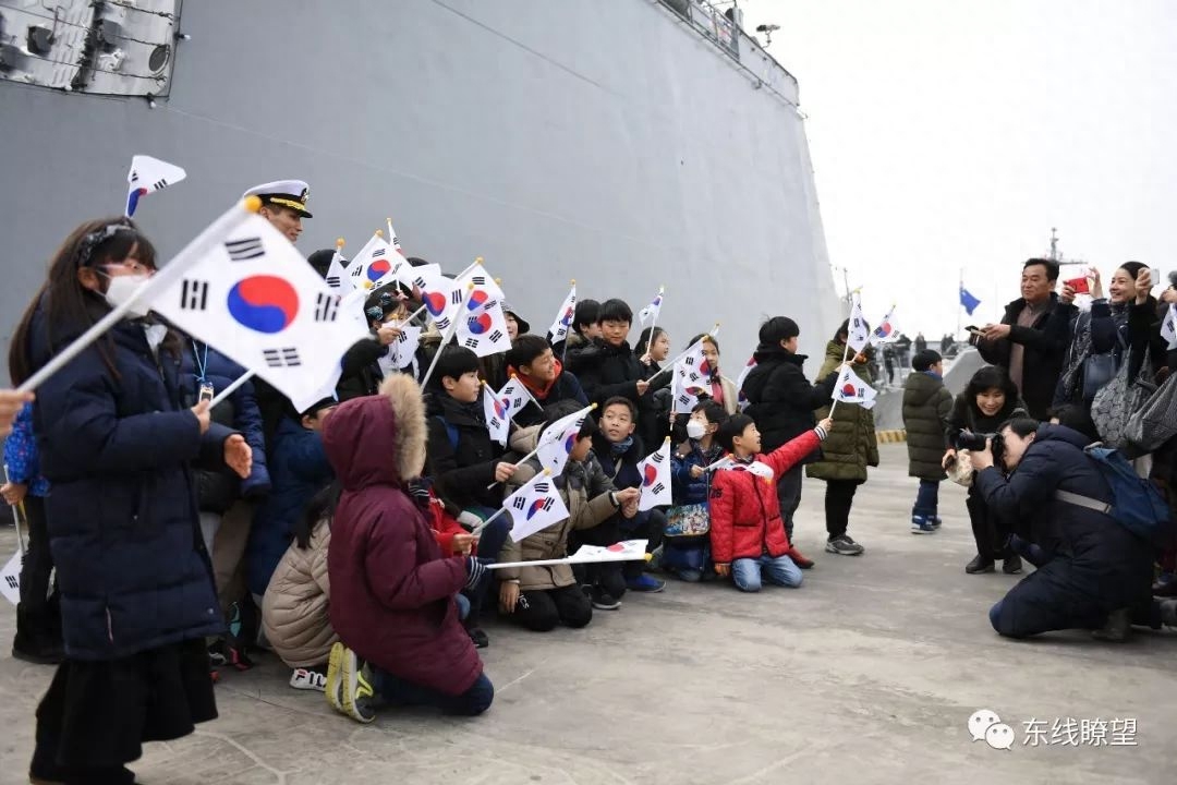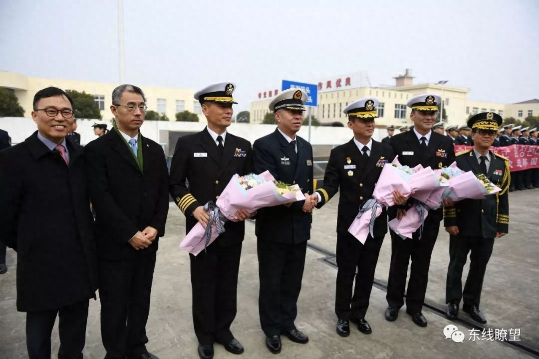 中方举行欢迎仪式,欢迎韩舰编队来访。