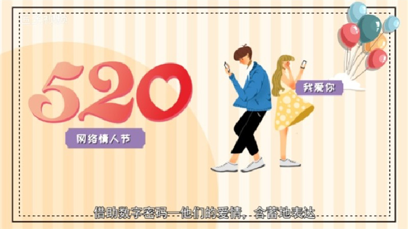5月20日,是网友们自发兴起的节日—网络情人节。“520”,简单的数字,表达的却是网络的情人们不能当面说出的那句“我爱你”,借助网络,借助数字密码—他们的爱情,含蓄地表达。