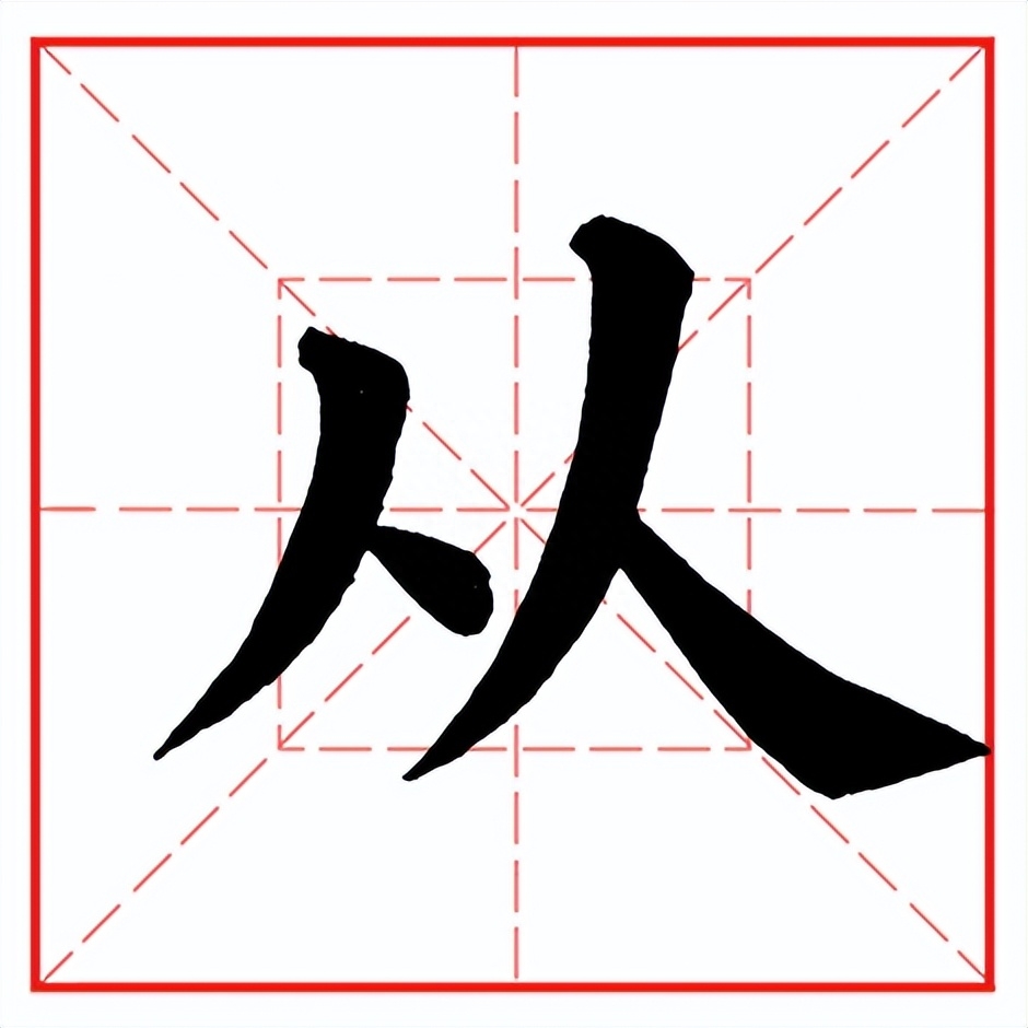 cóng,最早见于甲骨文,其古字由两个面朝左侧立的“人”构成,表示两人前后相从之意。金文中左边加“彳”,下部加“止”,即繁体字“從”。本义为跟随、相随,引申为听从、顺从等。