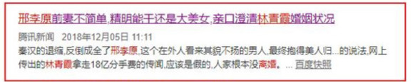2018年网上传出林青霞和邢李源离婚的新闻,据说导火索是因为没有男丁,还有人说是因为“私生子”,两人沉默,倒是邢李源前期张天爱出来帮他们澄清:他们婚姻幸福。