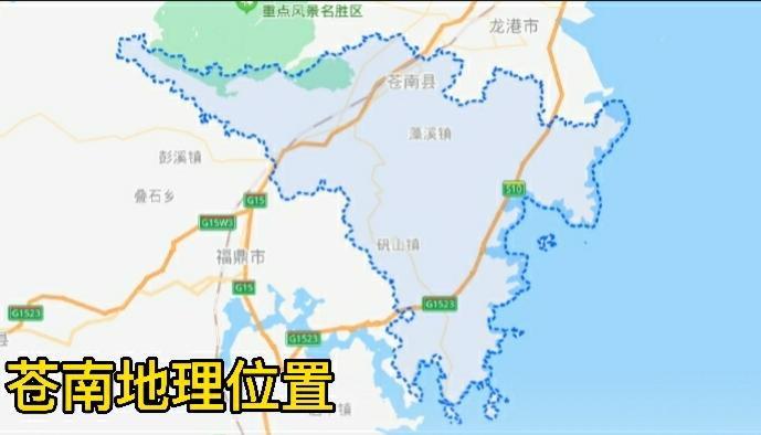 苍南县位于浙江省的最南端,面积1261平方公里,常住人口2020年为85万,GDP在2020为660亿(这里包括了龙港的GDP),西南边与福建省福鼎市相连,隶属于温州。苍南历史上一直属平阳县辖域,于1981年独立设县,2019年又从苍南县独立划出来了龙港市。本地属亚热带海洋性季风气候,冬暖夏凉,年平均气温17.9℃。因此,苍南也是一个非常宜居的靠山依海之地。