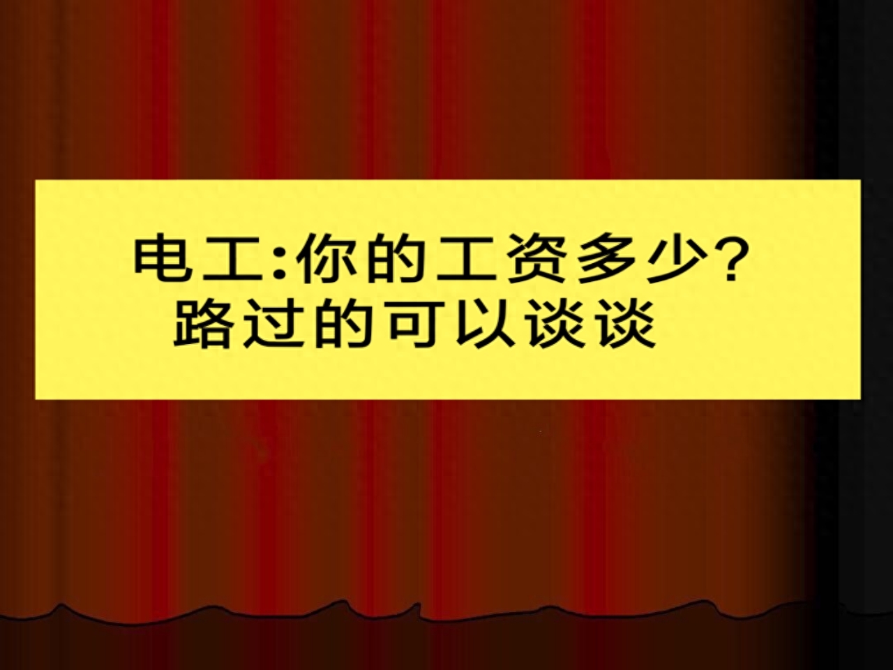 电工,你的工资多少?路过的师傅可以谈谈。电工,现在普遍的处于中低端的作业技能,电工首先是一门技术,不过这门技术的起点有点低,工资更是如此,甚至有时候连普通的流水线工人都比不了,有时候真的是让电工很尴尬,今天我们来谈谈工资吧,看看电工的工资,问问你所在岗位的工资和待遇,是不是跟大部分人一样!