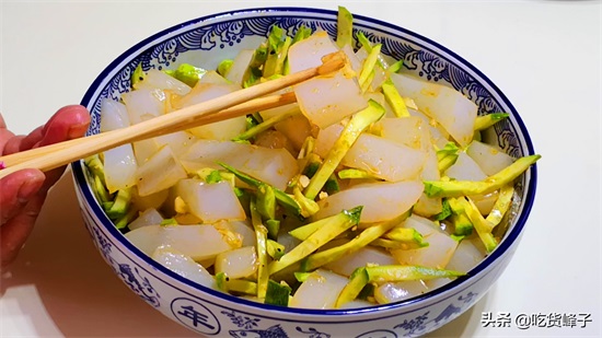 【准备食材】:豌豆淀粉200克 水1000克 黄瓜 大蒜 白糖 食盐