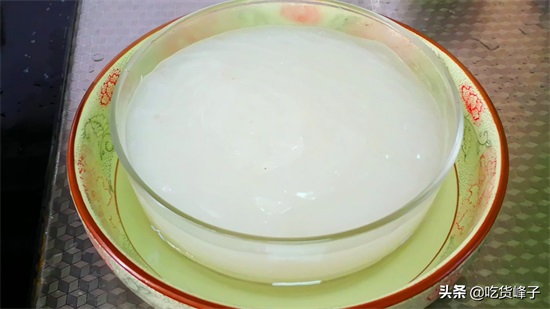 1.大碗内倒入豌豆淀粉200克,加入3克盐增加一下筋性,(最好选用纯度比较高的淀粉,既容易成型,吃起来口感也会更好),加入200克清水,边加边搅拌,因为淀粉很容易沉淀,所以要不停地搅拌,调至完全没有颗粒呈流水状的淀粉糊。