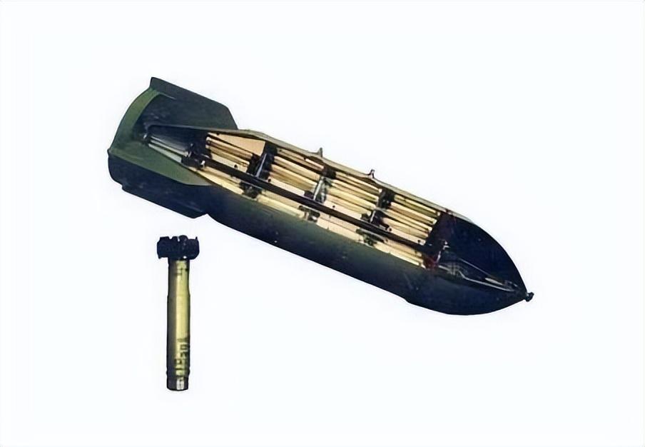 它就是一个炸弹内装247枚两用子母弹,每枚重0.63公斤,