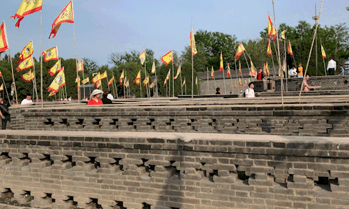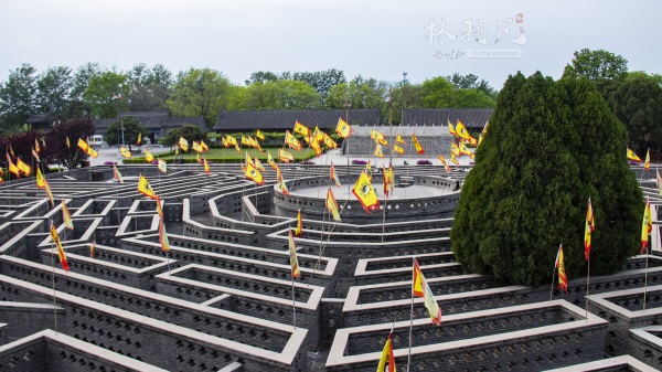 出了龙武营生活区,就能看到一个将台,站在将台上就能看到这个气势磅礴的八卦阵了,上面这张图是下午从景区往回走没人的时候拍的,讲真,这个八卦阵还是挺大的,我试着走了进去,走错了几回,旁边其他人有一些是干脆走不进去放弃的。身在这个八卦阵中,确实比较难看清全貌,不熟悉八卦阵的还真会迷失方向。