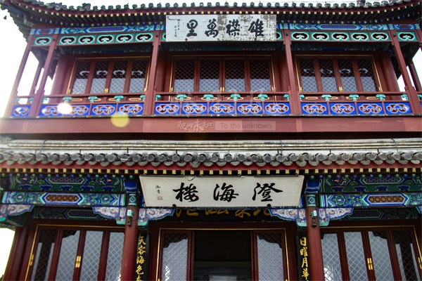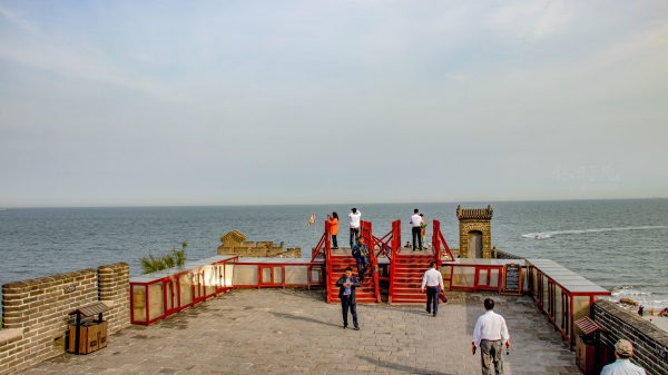 澄海楼前身为明初年修建的“观海亭”,明万历39年,兵部主事将观海亭扩建为澄海楼。澄海楼矗立在地势险峻的老龙头上,背山面海,仿明式大木架结构建造,是老龙头标志性建筑。