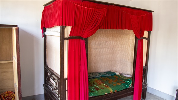 这个床和我们在影视作品里看到的一样,目前是开放状态,进去可以坐坐,不过上面比较脏,估计有人没脱鞋上床了。