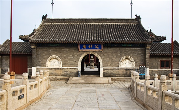 山海关老龙头海神庙是我国唯一一处建在海上的道教庙宇,门口分别有“护海神天应”和“护海神天佑”。现在的海神庙是1988年重建的,庙宇置于海中,三面环水,伸入海中124米,由牌楼、三孔桥、山门、钟楼、海神殿、天后宫、观海亭等几部分组成。