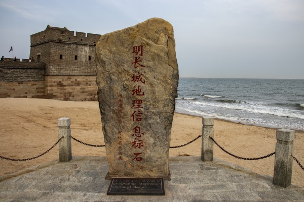 图33 位于山海关老龙头的“明长城地理信息标石”