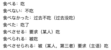 你看前面开头都一样,但是最后几个字母的不同,却大学决定了不同的“吃”的形式。