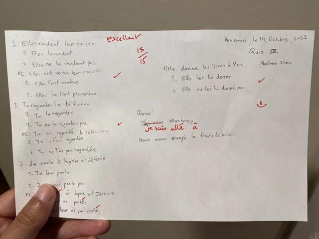 下面这个就是憨憨的法语考试的答卷,里面有些单词我甚至都能猜出意思。