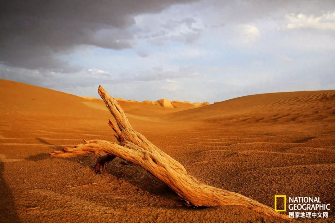 一颗胡杨木深插于城外的沙漠中。胡杨生而一千年不死,死后一千年不倒,倒后一千年不朽。