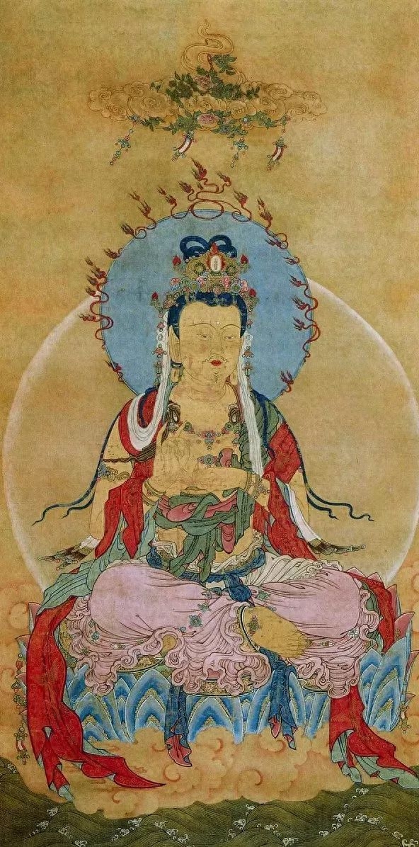 黑水城出土的大势至菩萨丝绸画,现存于俄罗斯冬宫博物馆。