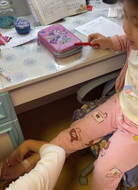 虽然自己时不时就要依赖药物来控制自己病情,但小欣蕊却不怕疼也不怕苦,当妈妈过来为她拔针时,李欣蕊不哭不闹,十分配合妈妈,还小声提醒让她轻一点。