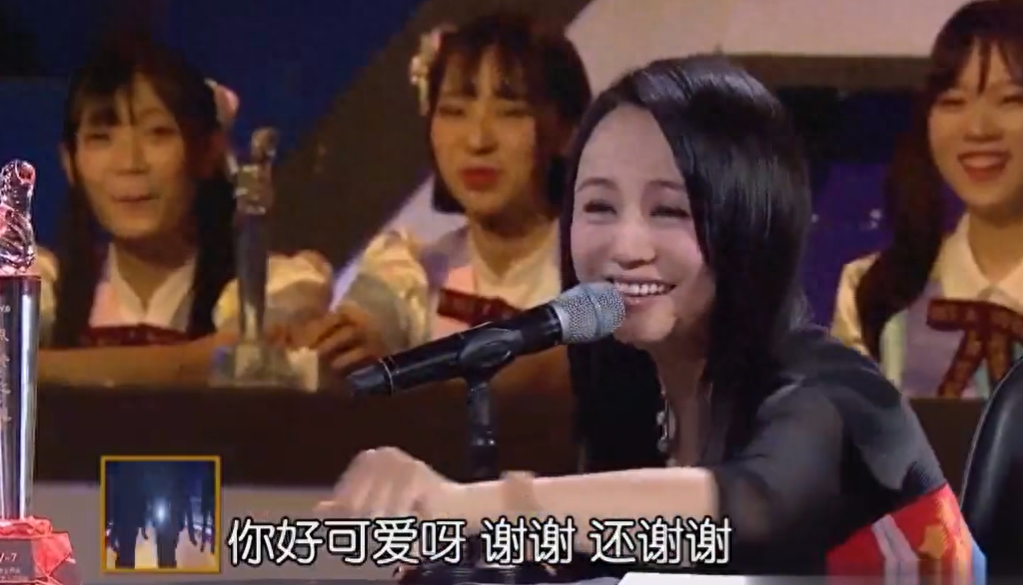 即便是站在笑星宋小宝面前,她也能做到将全场的目光吸引到自己身上。