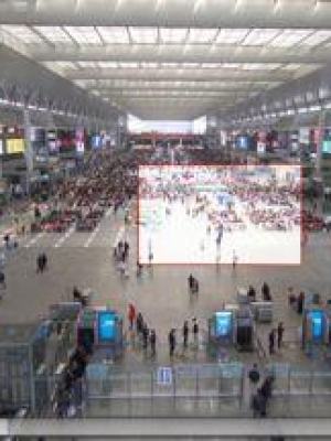 以上两张图是高铁站候车大厅样子实拍视频,点击视频中的蜻蜓任意区域,蜻蜓复眼有多少个眼,蜻蜓复眼怎么看东西是一个小眼着一个小东西吗?,百米表现范围内的人脸都清晰可见,而这仅仅是一台阵列相机所拍摄的效果。