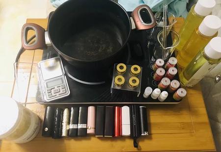 做口红的最基本材料就是色粉,基础油,蜂蜡,烧杯。其次还要配上香精,加热工具,模具,搅拌棒。