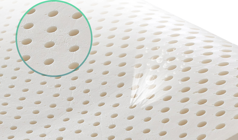 天然乳胶床垫有几千个细小网状结构的排气孔,这些孔能够排出人体排出的余热与潮气,也可促进自然通风,提供最好的天然空调系统,让枕头里的空气保持新鲜,健康。每一个季节都可以保持舒适感觉。