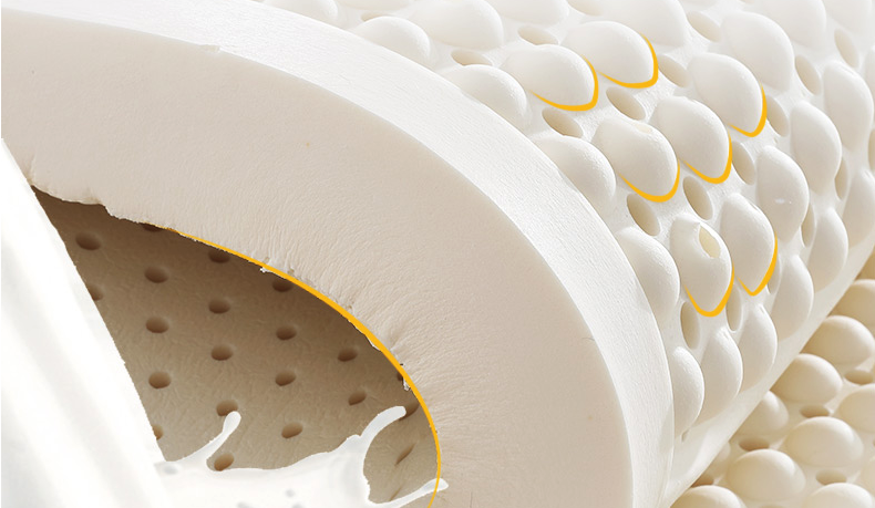 看——天然乳胶有几千个蜂巢式气孔,比其它纤维容纳更多的空气。这些孔可以排出人体排出的余热及潮气, 可促进天然通 风,提供最佳的天然空调系统, 使床垫里面的空气保持新鲜和健康,每个季节都能保持舒适感觉。