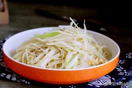 1 土豆丝要泡水才能更脆,洗去淀粉土豆丝颜色才不会发黑、不粘锅