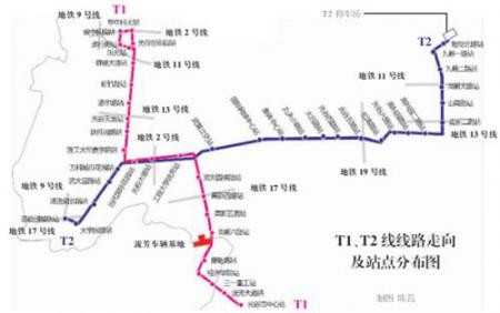 T1线路由一段单环线和一段双线组成,单环线经关山大道、珞瑜路、珞雄路、步行街北路围合而成,线路长度为2.414公里,设站5座;双线起于关山大道东侧,沿三环线南侧、光谷一路路中、光谷大道北侧走行,终点位于光谷大道北侧芯中心站,在高新六路设置流芳车辆基地。