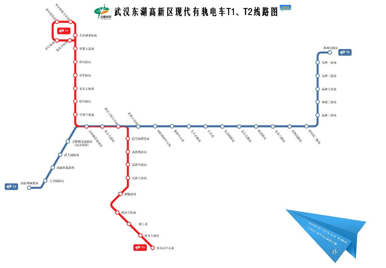 T1线路由一段单环线和一段双线组成,单环线经关山大道、珞瑜路、珞雄路、步行街北路围合而成,线路长度为2.414公里,下面来看看武汉有轨电车t1线路图