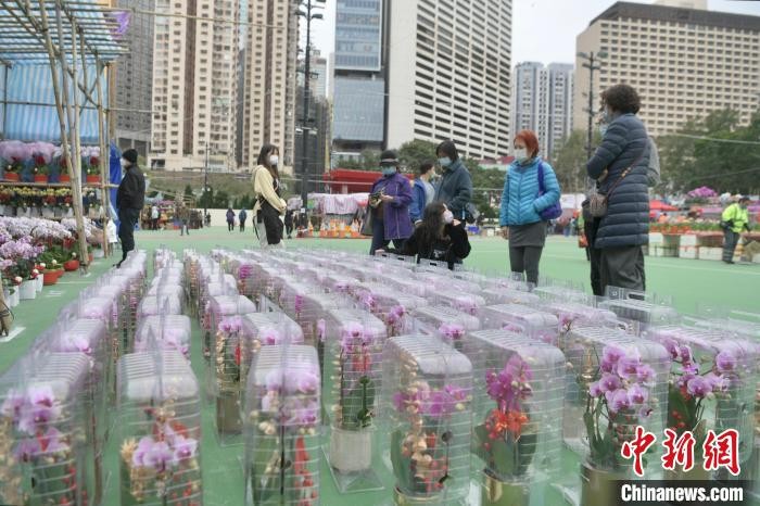 (新春见闻)香港年宵花市开锣 市民买年花贺新春