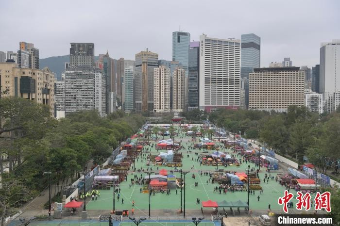 1月16日,香港的农历年宵市场即日起开锣,位于铜锣湾维多利亚公园的年宵花市吸引市民入场购买年花,装饰家居贺新春。(记者李志华)