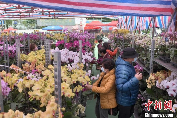 市民选购年花。 李志华 摄