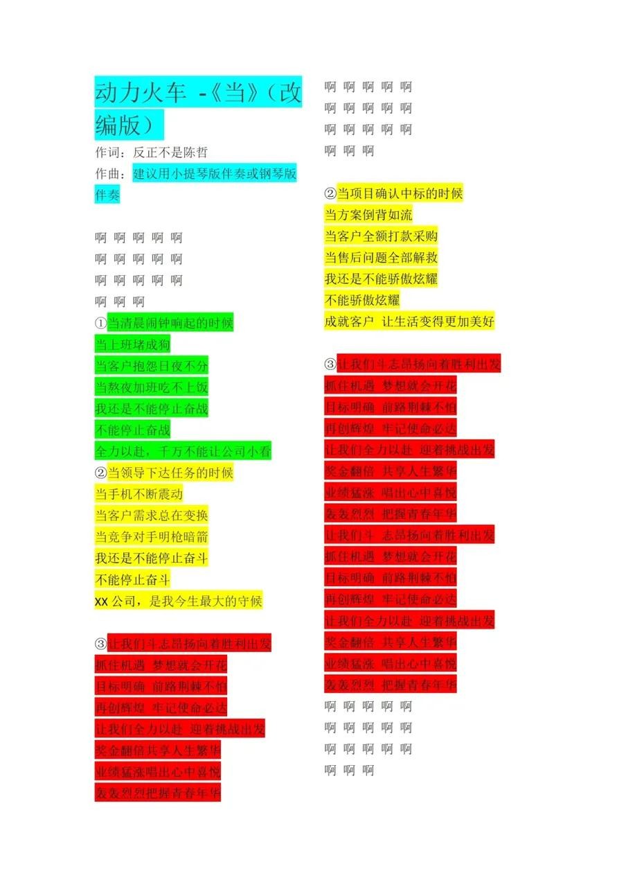 有时候,还可以对一些比较火的歌曲进行改编,旋律不变,将歌词改编成与打工人相关的,比如安视迈联科技就将动力火车的《当》进行了改编,满满正能量。