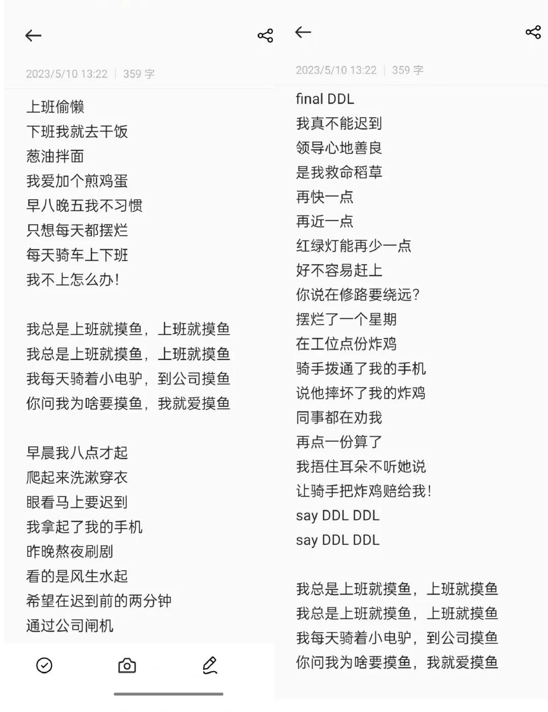 还有红薯网友将一首《上班就摸鱼》送给大家,改编自《临时抱佛脚》威尔和《考前才复习》,不得不说,单单是看歌词,就可以唱出来的程度,而且预感在年会现场会很嗨。