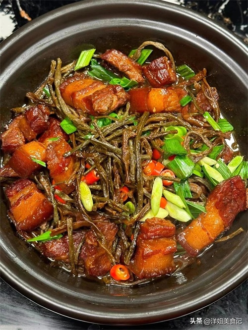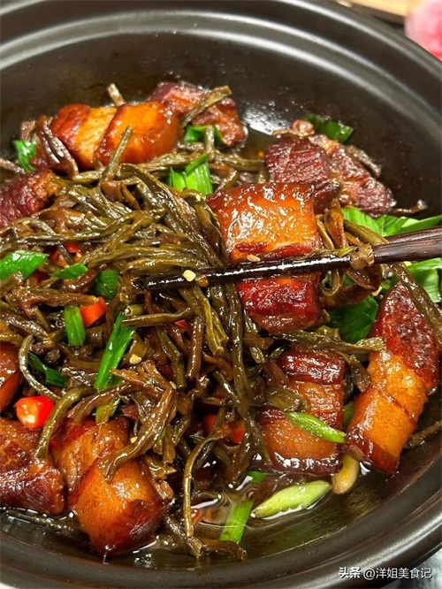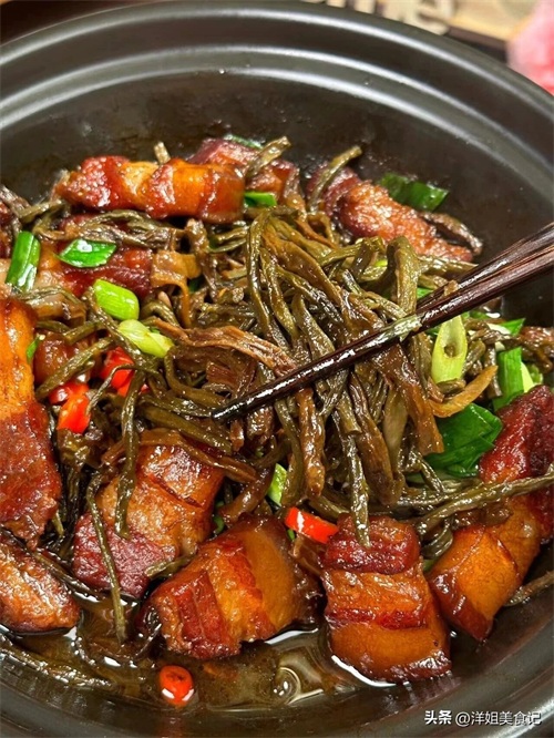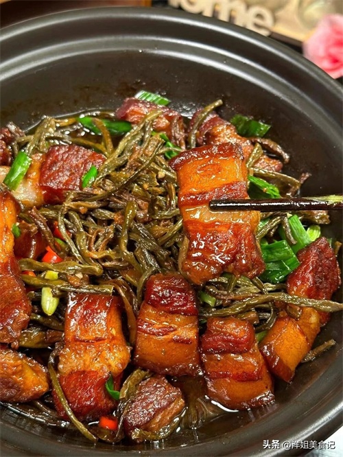 蒜叶干豆角砂锅炖五花肉