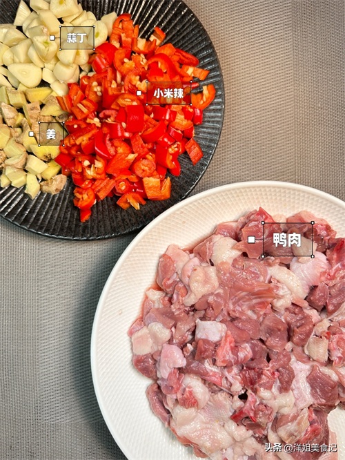 蒜片泡椒红椒丁炒鸭肉