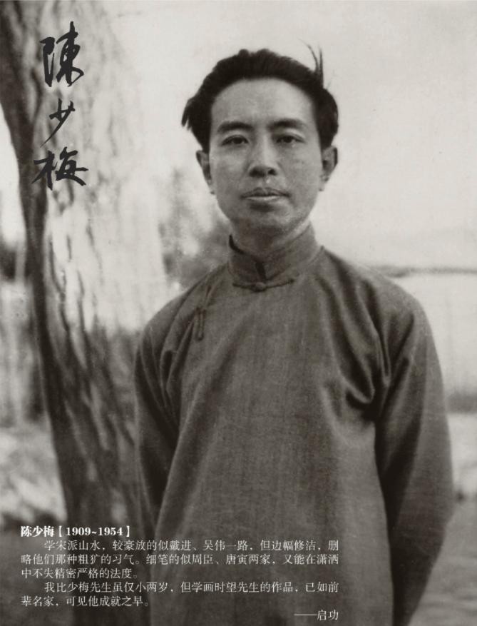 陈少梅(1909年4月—1954年9月),名云彰,又名云鹑,号升湖,字少梅,以字行,生于湖南衡山,近现代杰出国画家。陈少梅为京津画坛的杰出画家,津门国画界带头人,陈少梅毕生致力于国画的传承和发展,为20世纪后半期津沽画坛奠定了基础并作出重要贡献。