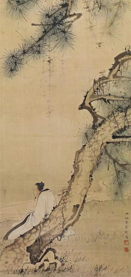 陈少梅的绘画语言整体上比较平和自然,但其作品中的笔法十分强显,节奏感较强,笔时笔尖藏锋,融入元人绘画的韵味,不仅使绘画作品具有一定的力度美,而且表现出画面的笔墨淡逸、秀雅温润,这也是陈少梅笔法语言的独到之处。