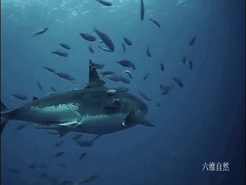 在海洋食物链中,大白鲨被认为是最大的食肉鱼类,成年后一般体长4—6米,可大白鲨也有害怕的对手,当发现有虎鲸出现后,大白鲨一般不敢轻易靠近虎鲸的区域,避免被虎鲸捕杀。