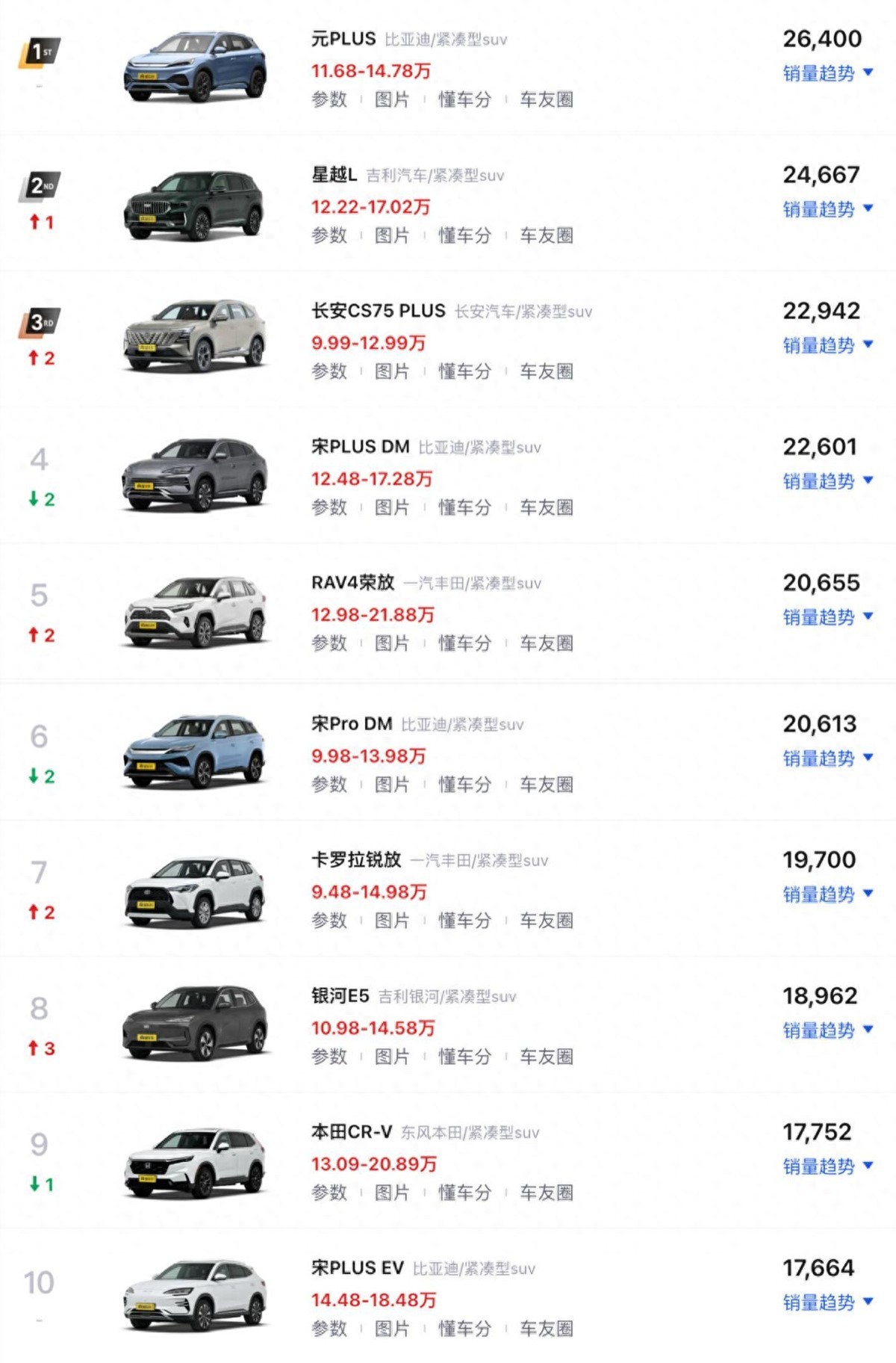 紧凑型SUV销量TOP10盘点:油车重新成主流,市场风向标变了?